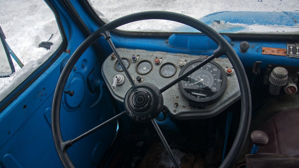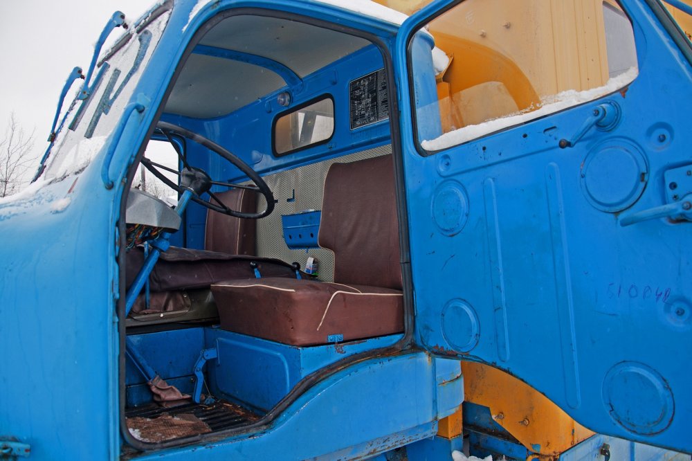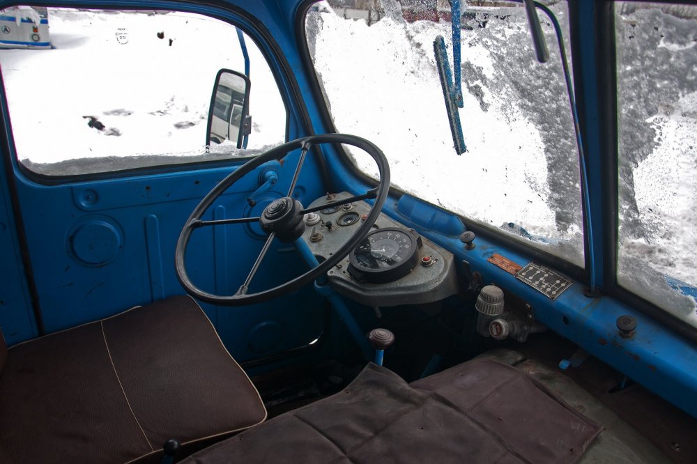 Посадка за рулём, разумеется, вертикальная, но достаточно просторная. Даже руль огромного диаметра не прижимает к сиденью, как это бывает на многих советских и европейских грузовиках того времени.