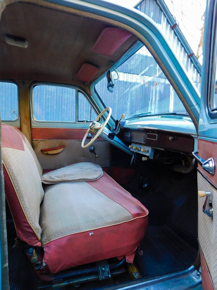 Отопитель в машине работает вполне нормально, особенно если открыть люк воздухопритока перед ветровым стеклом. Можно снять куртку и повесить на крючок над центральной стойкой. Жалко, у данного экземпляра не сохранился ламповый радиоприёмник. А ещё у него нет часов. У некоторых комплектаций 407-х и 403-х они были стильные, в эбонитовом корпусе. И стояли на потолке прямо над зеркалом заднего вида.